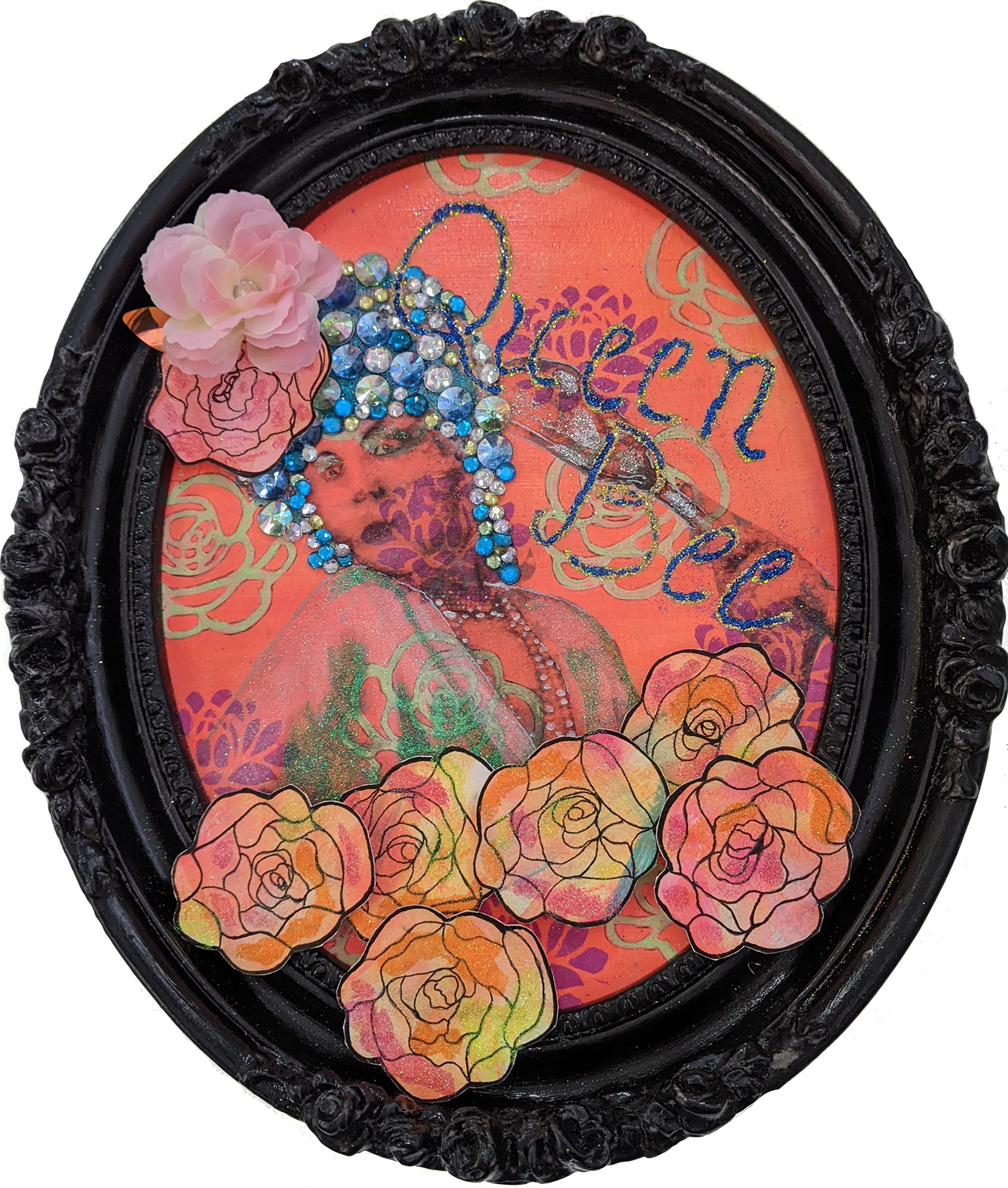 My work often depicts female archetypes inspired by fairytales, mythologies, and historical figures in multilayered mixed media bodies of work and installations. I create maximalist works that mimic the way in which we are so frequently bombarded with imagery and notions that perpetuate patriarchal and oppressive viewpoints.