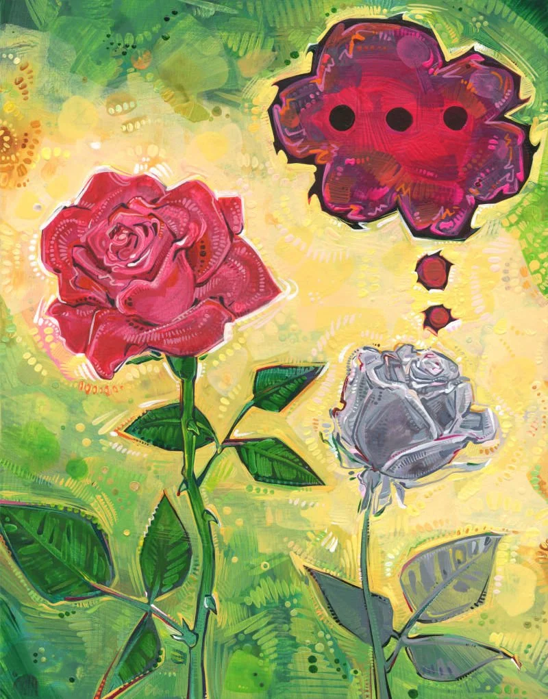 The images of Everything’s Fine are a starting place. “I feel like this,” you might say, pointing to one in particular. You could use a digital image as a smartphone background--a private reminder that at least one other person, AKA me, has felt like you. You might even use your favorite image as a profile pic. You can speak through these paintings. Instead of struggling to find the right words, these artworks can help you show others how you feel.